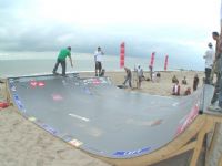 Onze 6 meter brede Miniramp stond op het strand in Domburg evenals vorig jaar!Check out hoe onze skatebaan 2 dagen lang door jong en oud vereerd werd voor vele sessie's Minirampen on the Beach.